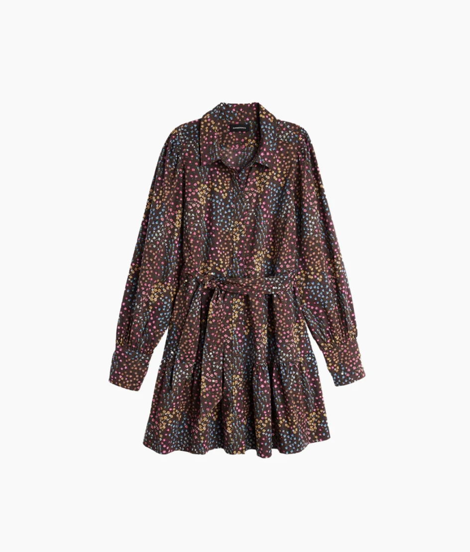 The Countryside Poplin Tiered Shirtdress – Floral Prairie in Chocolate