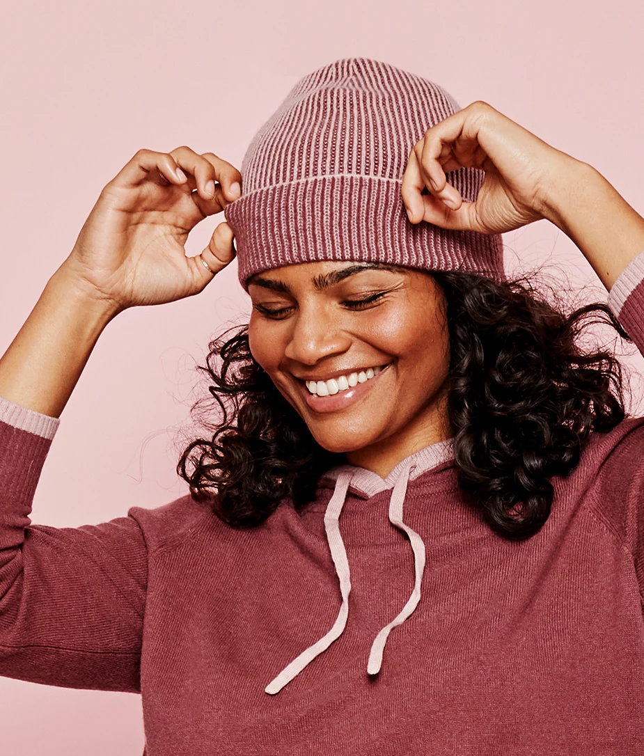 The Coziest Cashmere Blend Hat – Rosewood & Shell