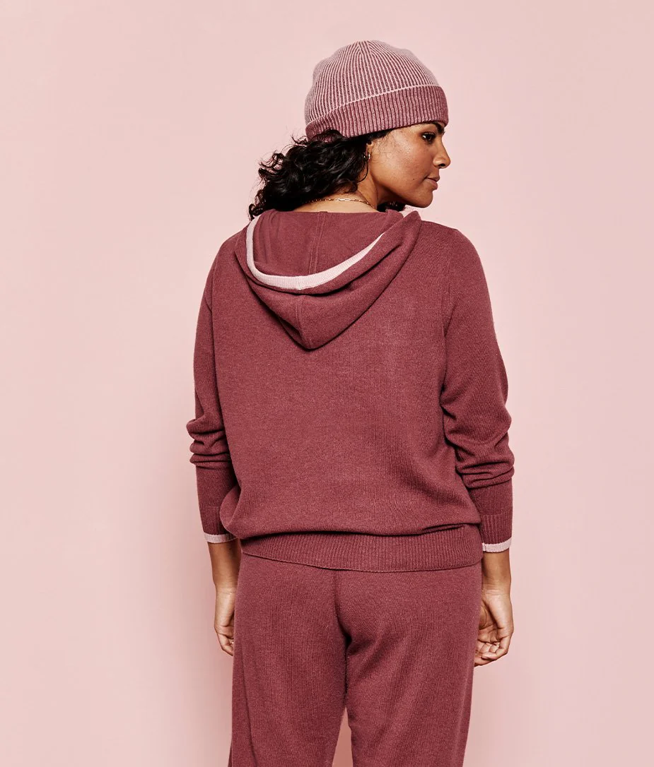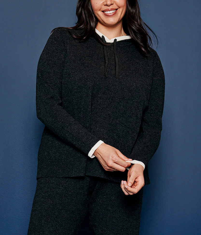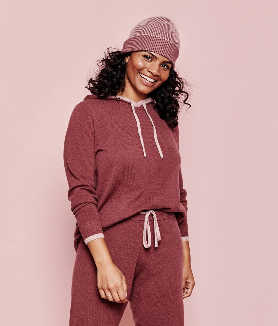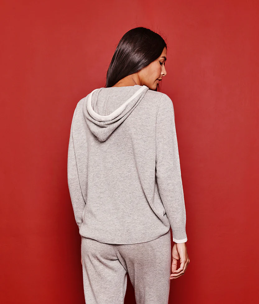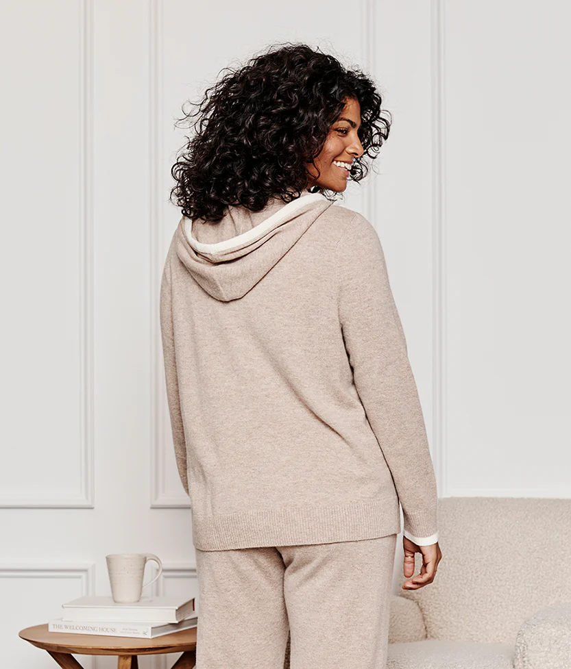 With a beautiful color blocked trim on the hood, drawstrings, and cuffs, and made in an ultra-luxe cashmere blend, this super-soft hoodie is the perfect wardrobe staple for lounging in style. Pair it with The Coziest Cashmere Jogger for head-to-toe luxuriousness.