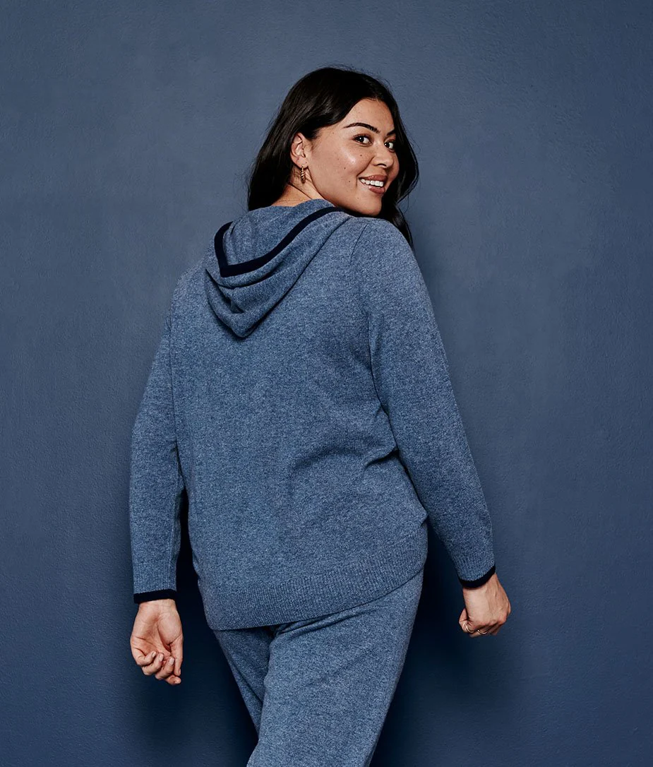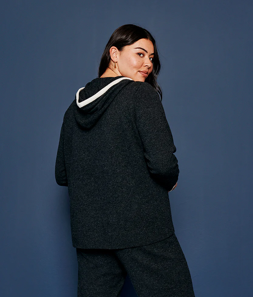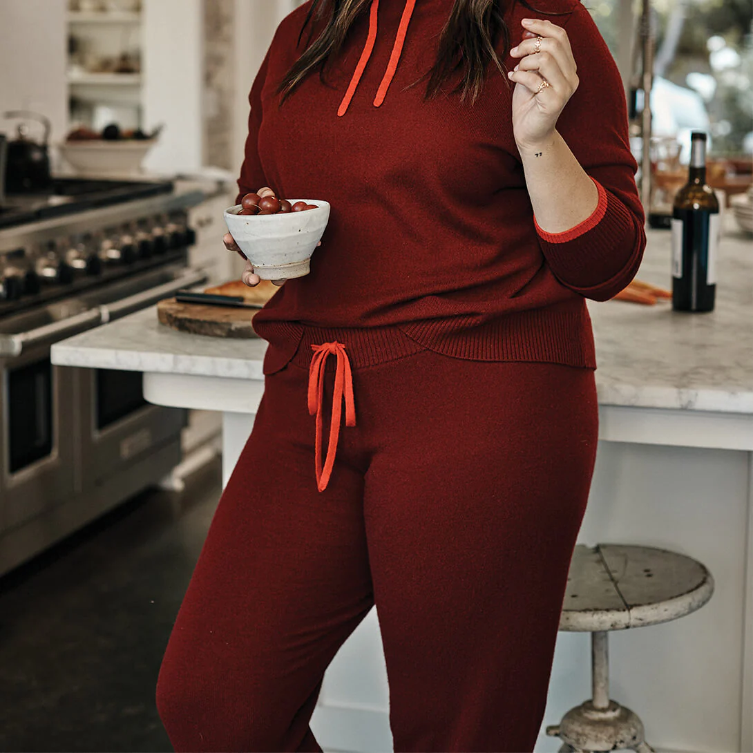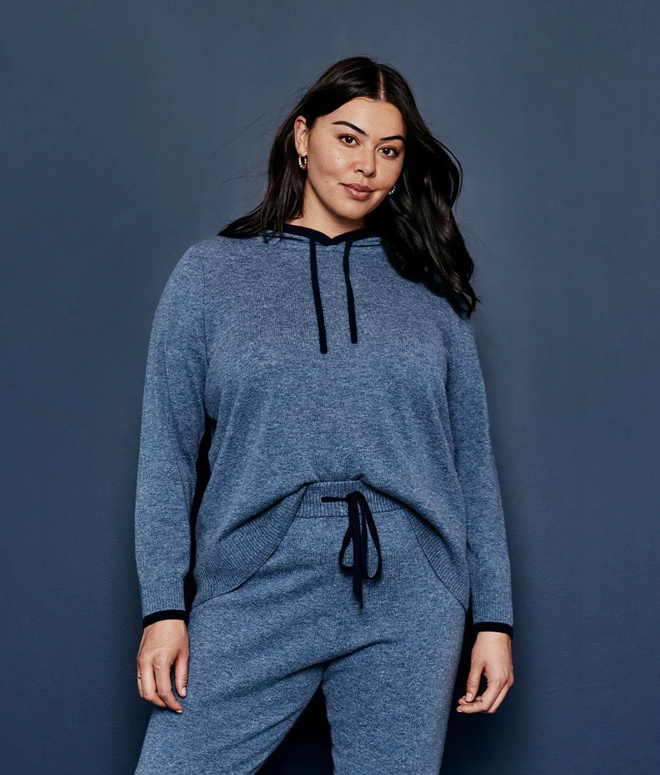 With a beautiful color blocked trim on the hood, drawstrings, and cuffs, and made in an ultra-luxe cashmere blend, this super-soft hoodie is the perfect wardrobe staple for lounging in style. Pair it with The Coziest Cashmere Jogger for head-to-toe luxuriousness.