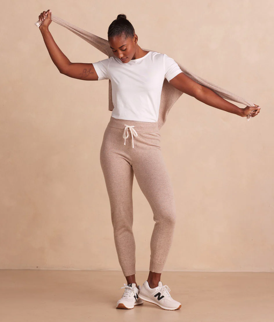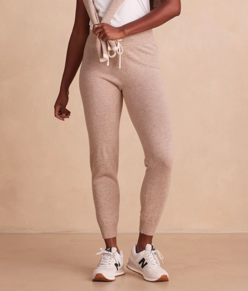 The Coziest Cashmere Blend Jogger – Toffee & White Sand