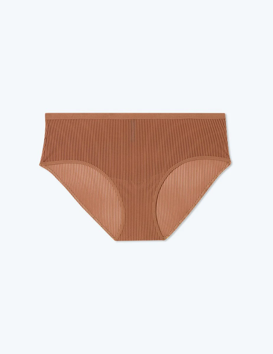 Feel like you are wearing nothing at all in our ultra-comfortable, Feel Free Brief Underwear. This lightweight essential brief underwear is just what you need to feel cool and comfortable all day long with our highest amount of coverage and a mid-rise waist. Designed with a super-soft elastic waistband, this classic brief underwear is comfortable and boasts serious staying power. Made from recycled plastic waste bottles, this luxurious, semi-sheer, silky fabric is only available only at Summersalt.