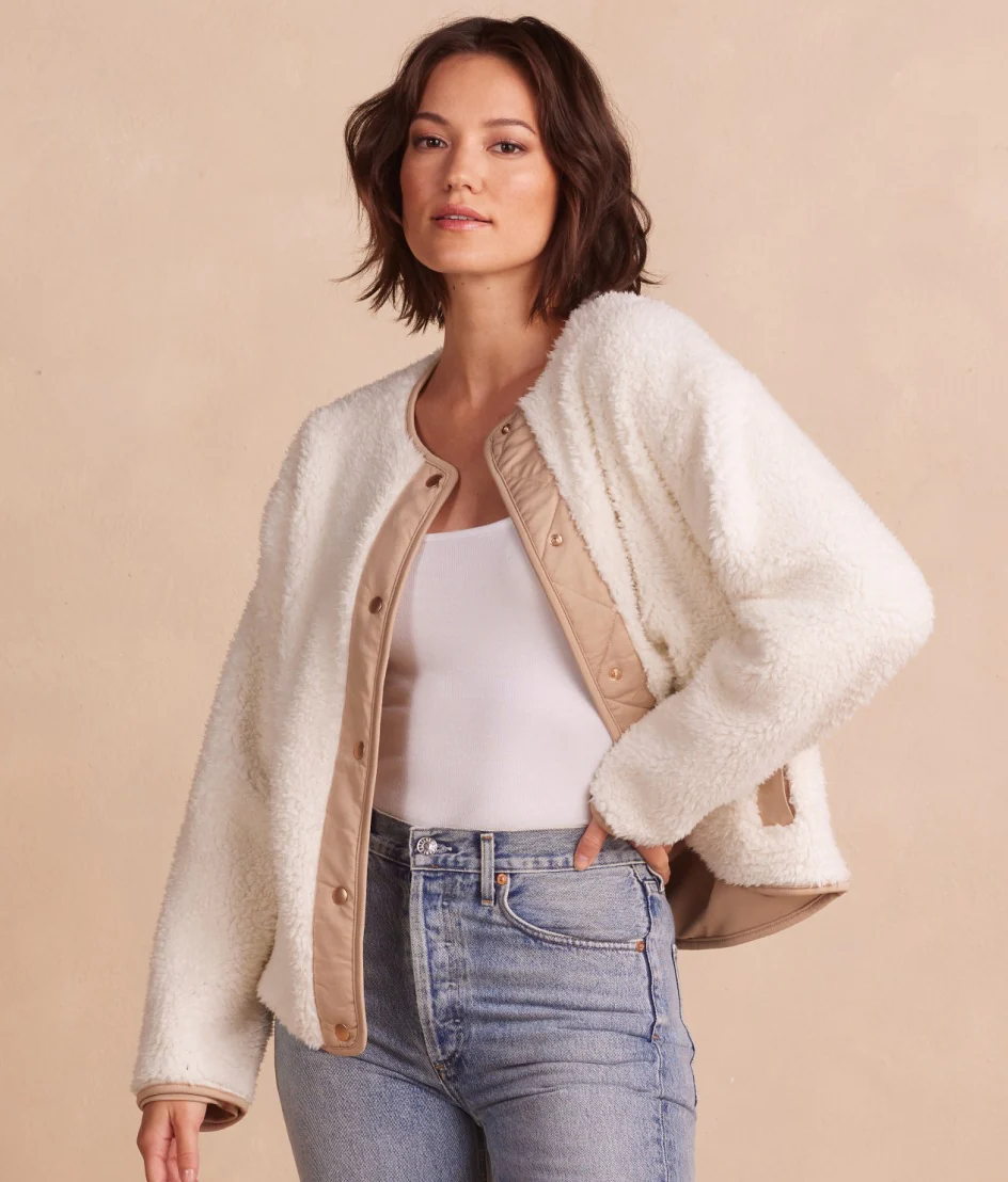 The High Pile Short Sherpa Jacket – White Sand & Moonlight