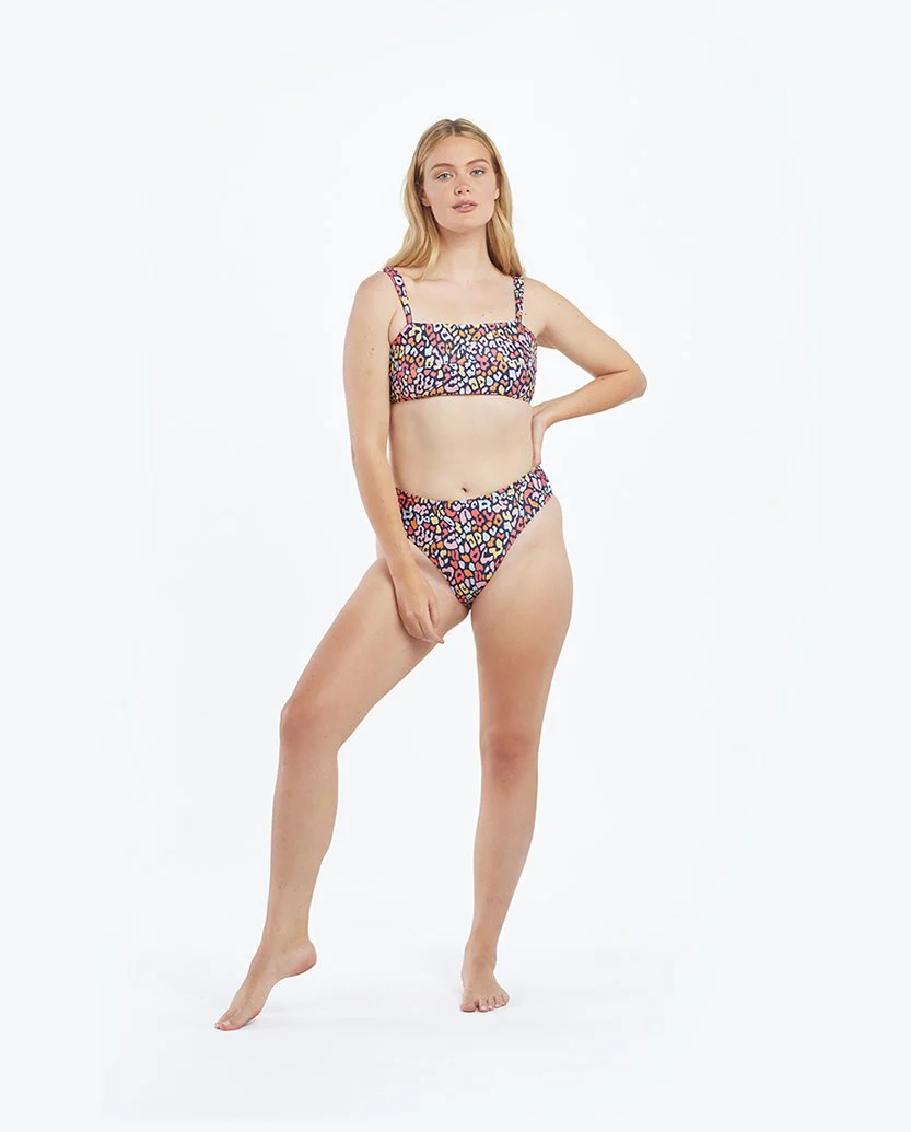 Crafted with a high cut at the leg, our High Leg Mid Rise Print bikini bottom is the perfect mix-and-match bottom for your swim wardrobe. It sits just below the belly button, but is higher than a traditional low rider bottom, and provides a good amount butt coverage. (No wardrobe malfunctions, no worries.)