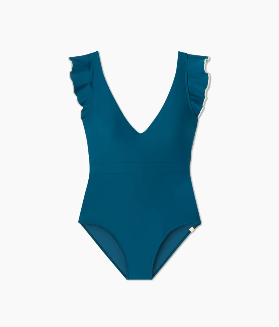 A deep vee front, a stunning open back, and flirty ruffles—this suit has it all. Our signature compression keeps you feeling secure (no tugging or adjusting), and the architectural details make a statement from every angle. Get out there and get ready to turn some heads.