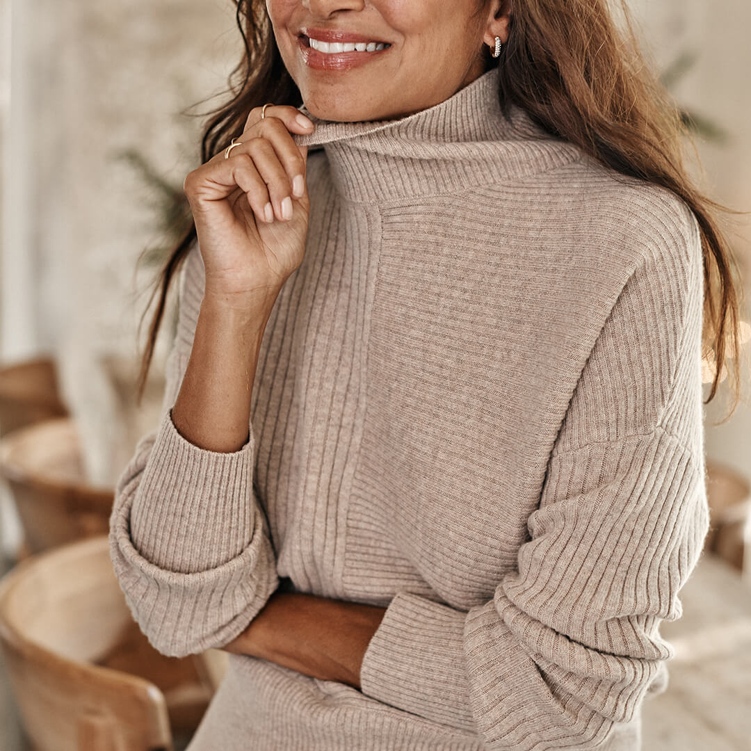 The Luxe Cashmere Blend Funnel Neck Sweater – Main