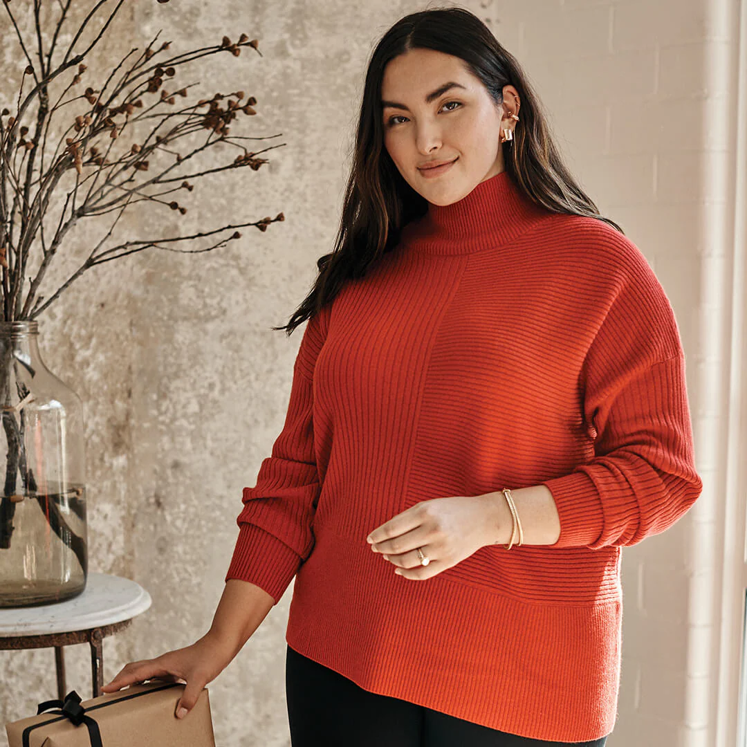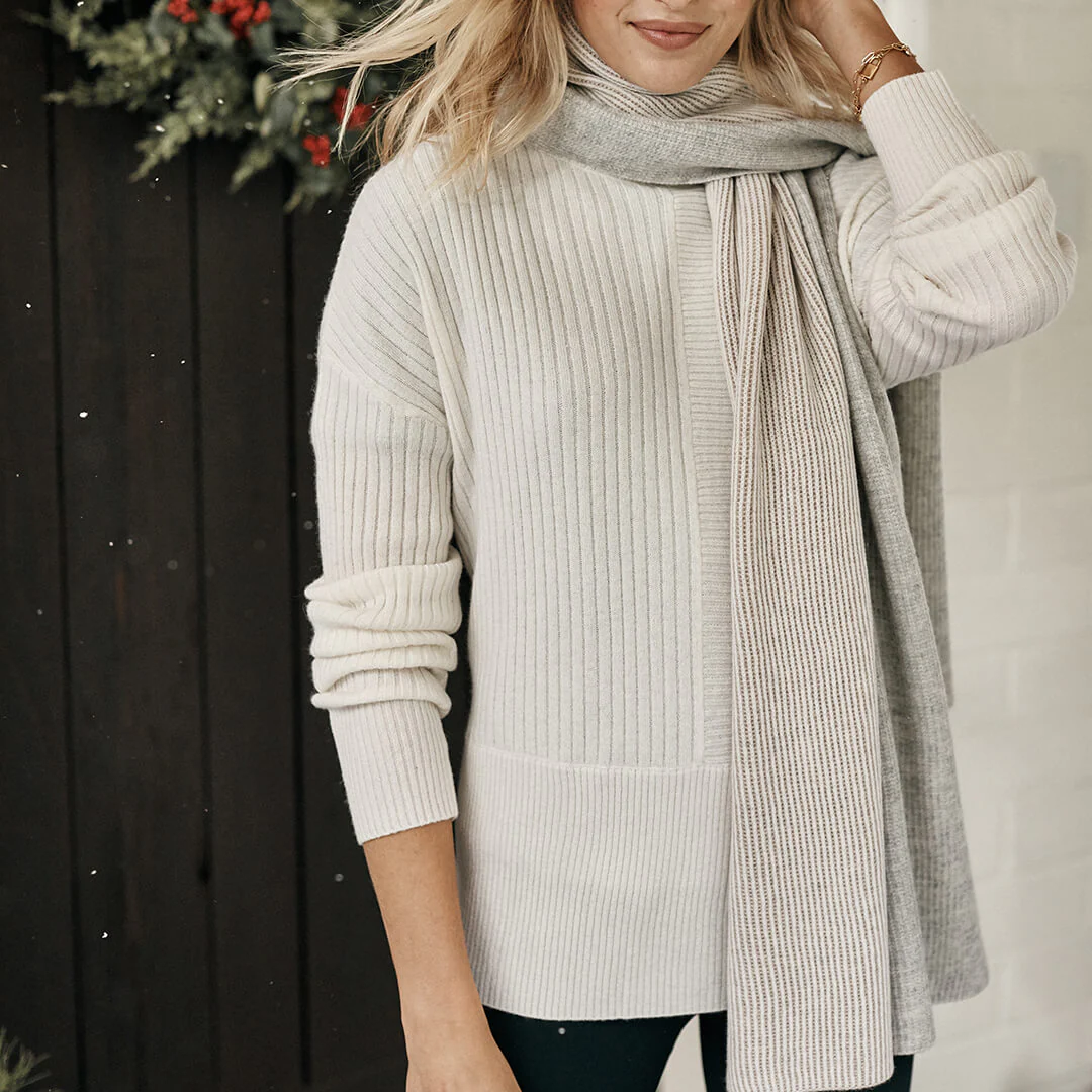 Stay warm and stylish in this gorgeous rib mix cashmere blend sweater! The on-trend funnel neck, drop shoulder, and slightly longer length makes this sweater perfectly versatile. This perfect blend of cashmere and wool will keep you perfectly cozy without being too hot. This is the sweater you will be wearing for years to come!