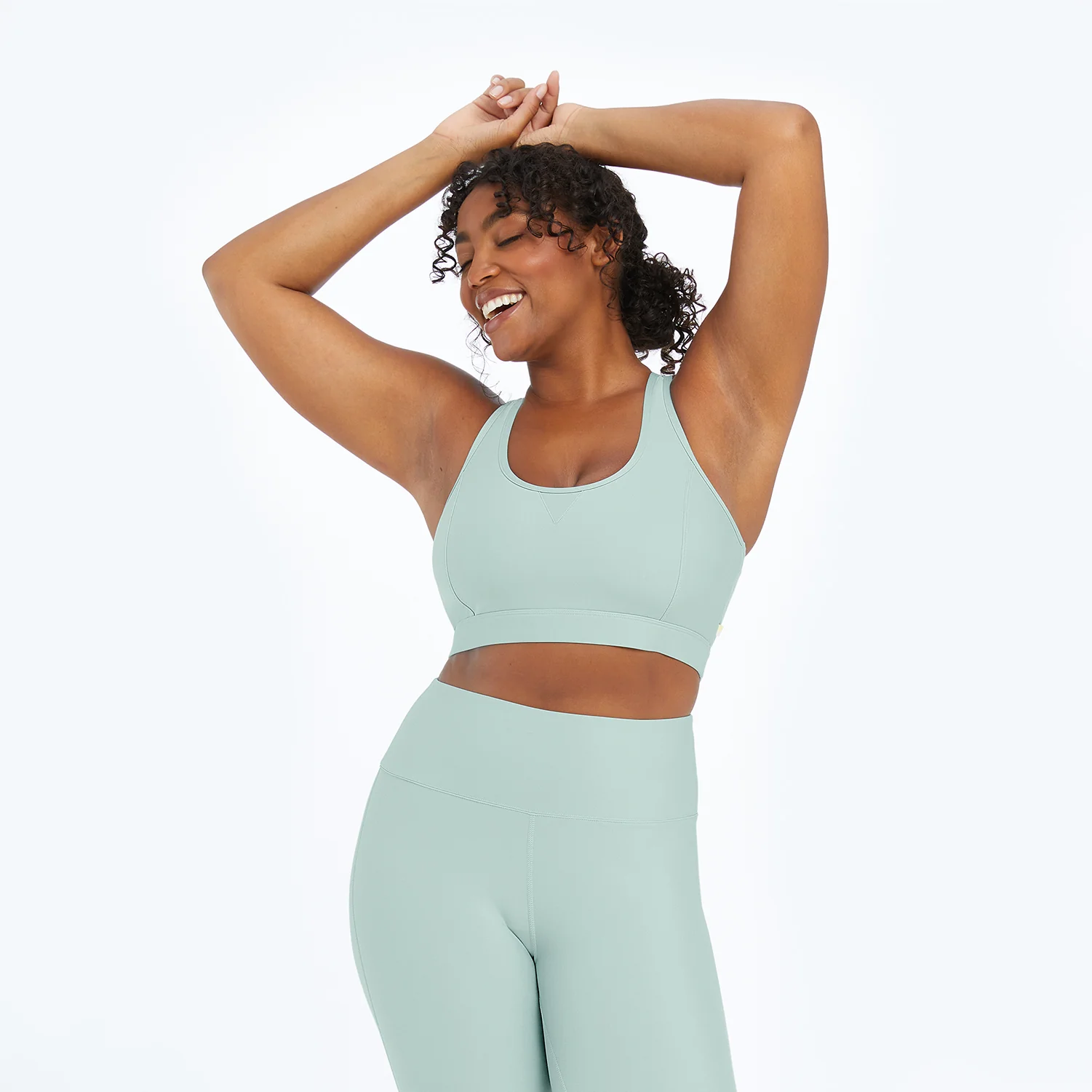 SUSTAINABLE: Our recycled polyester is made from recycled plastic bottles and is certified using the Global Recycled Standard. Each sports bra is made up of 8 plastic (16.9 oz.) water bottles.