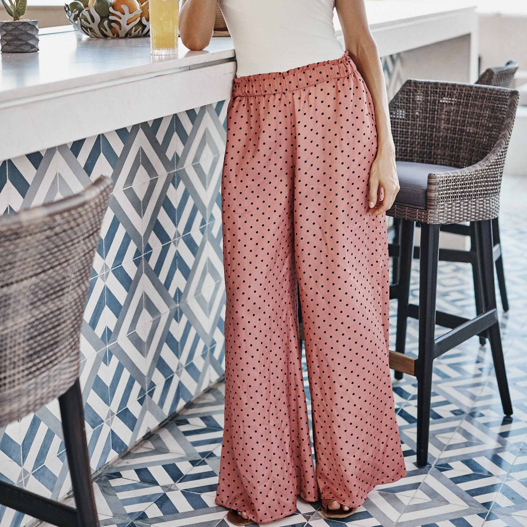 Our version of a beach trouser is luxe, lightweight, and ready for anything from poolside cocktails to brunch on the beach.