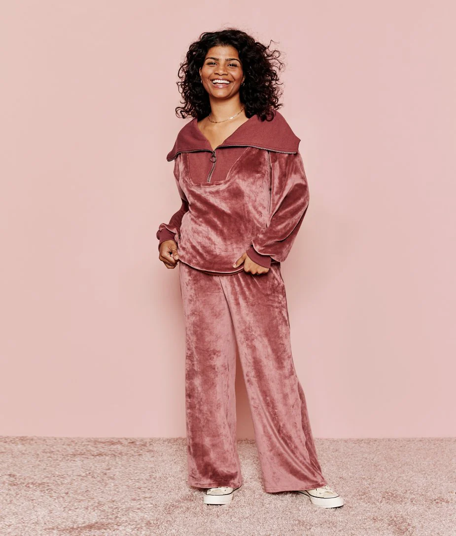 A little bit retro meets a whole lotta luxe. From the classic drawstring waist to the ultra-flattering fit, this pant is chic, comfy, & softer than anything you’ve ever felt. Bonus: our absurdly plush velour is made with recycled materials and has the perfect touch of stretch for extra comfort.