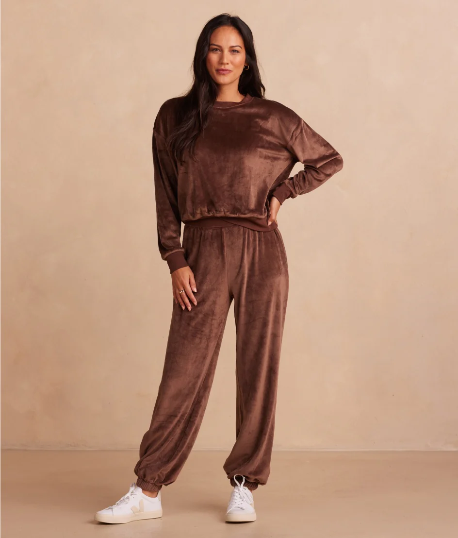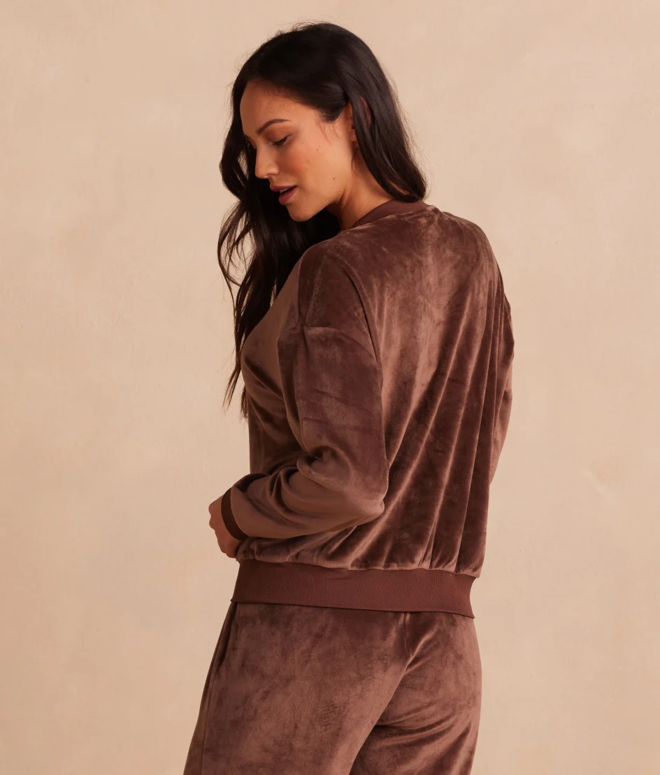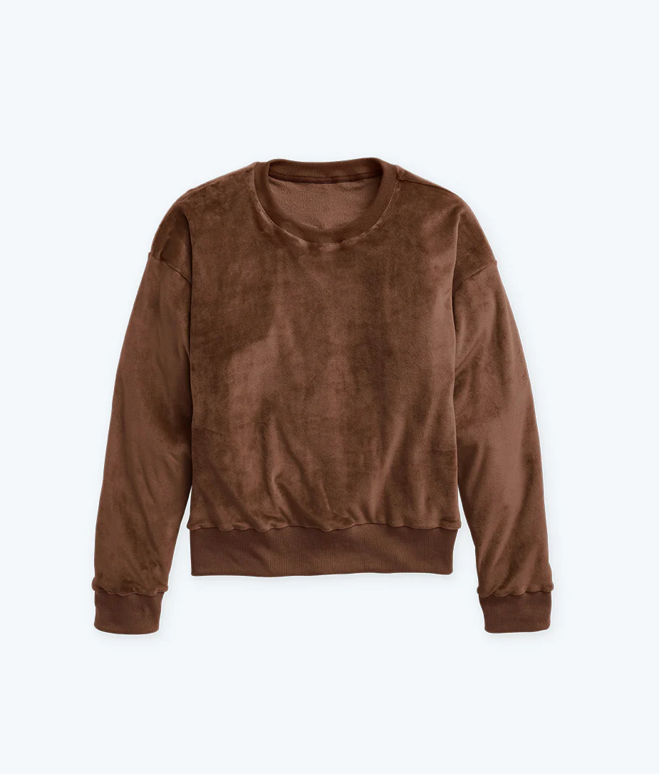 A little bit retro meets a whole lotta luxe. This festive take on our best-selling crew is chic, comfy, & softer than anything you’ve ever felt. Bonus: our absurdly plush velour is made with recycled materials and has the perfect touch of stretch for extra comfort.