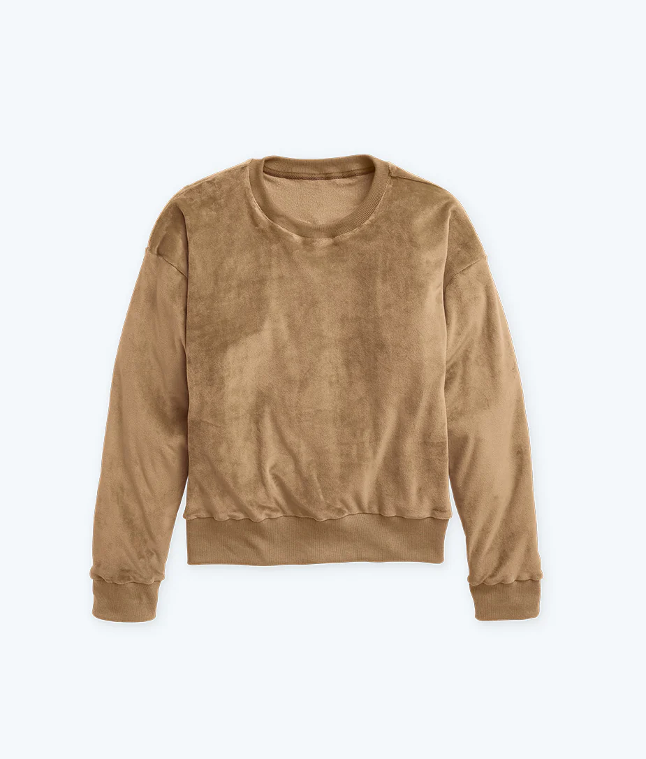 A little bit retro meets a whole lotta luxe. This festive take on our best-selling crew is chic, comfy, & softer than anything you’ve ever felt. Bonus: our absurdly plush velour is made with recycled materials and has the perfect touch of stretch for extra comfort.