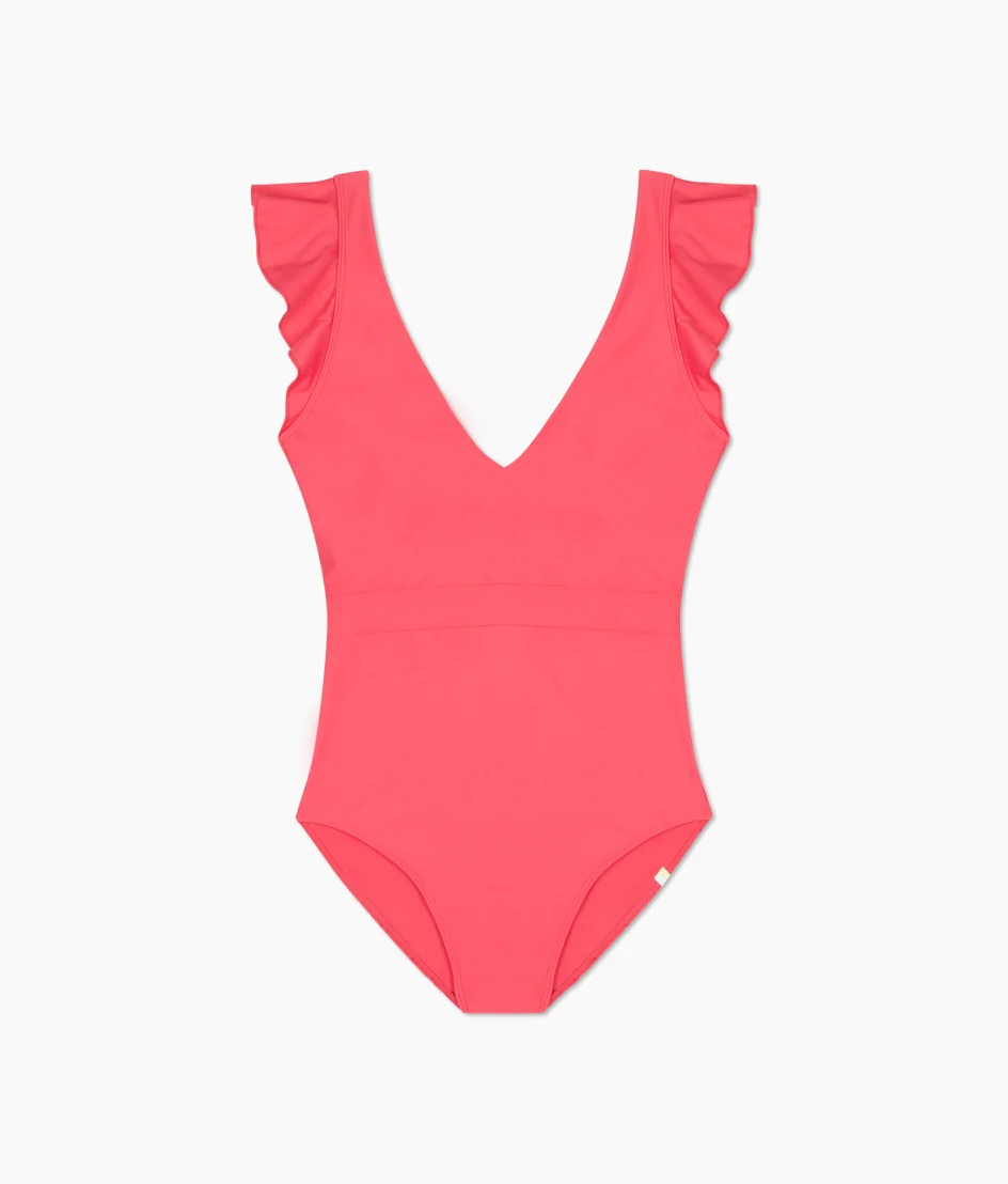 A deep V front, a stunning open back, and flirty ruffles—this suit has it all. Our signature compression keeps you feeling secure (no tugging or adjusting), and the architectural details make a statement from every angle. Get out there and get ready to turn some heads.