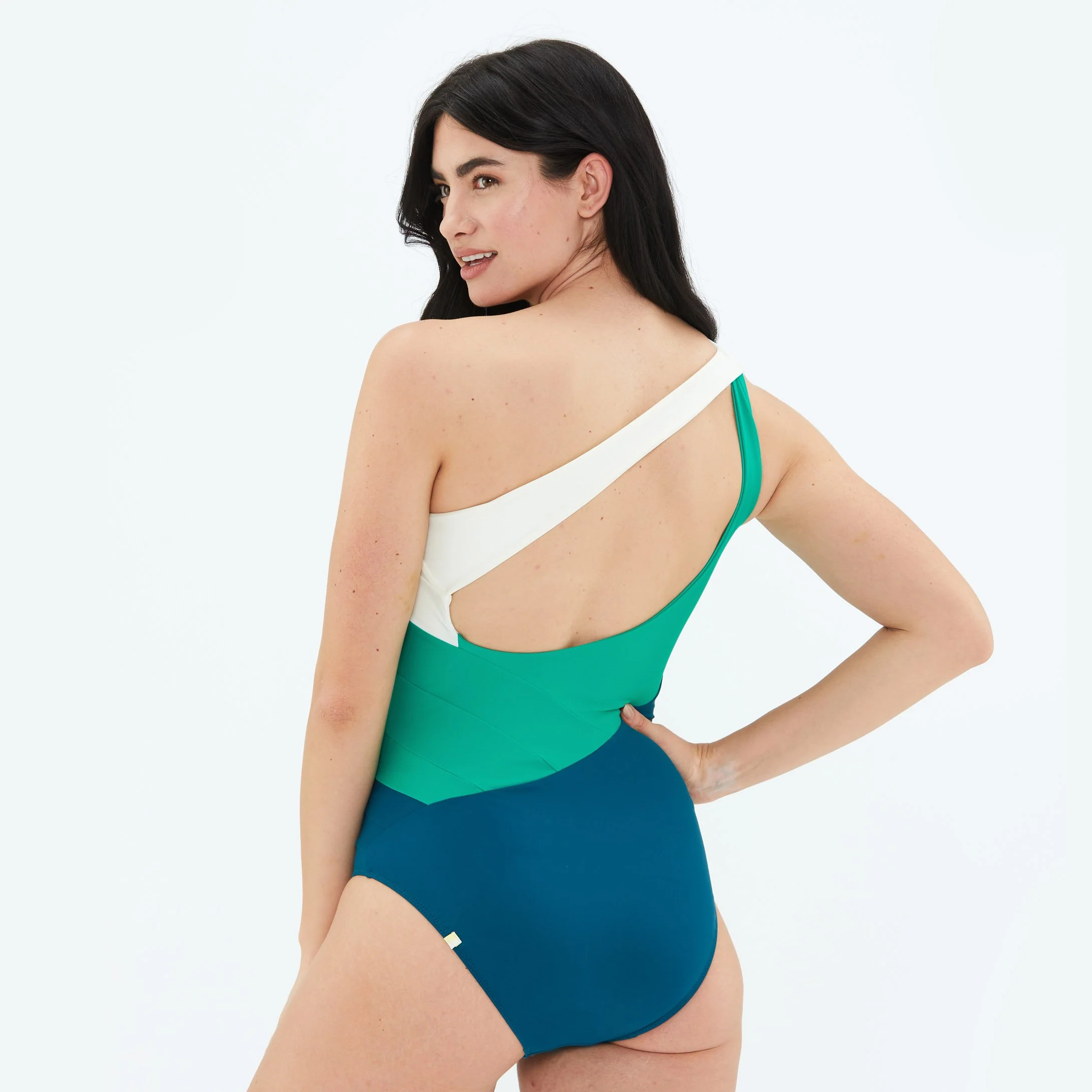 Slip into The Sidestroke and start ticking off items on your bucket list. This swimsuit is built to move with you, but stays perfectly in place where you need it most, thanks to the unique design and construction that offers stability and compression. The one-shoulder strap makes this asymmetrical style a figure-flattering sure bet for all shapes and sizes.Â