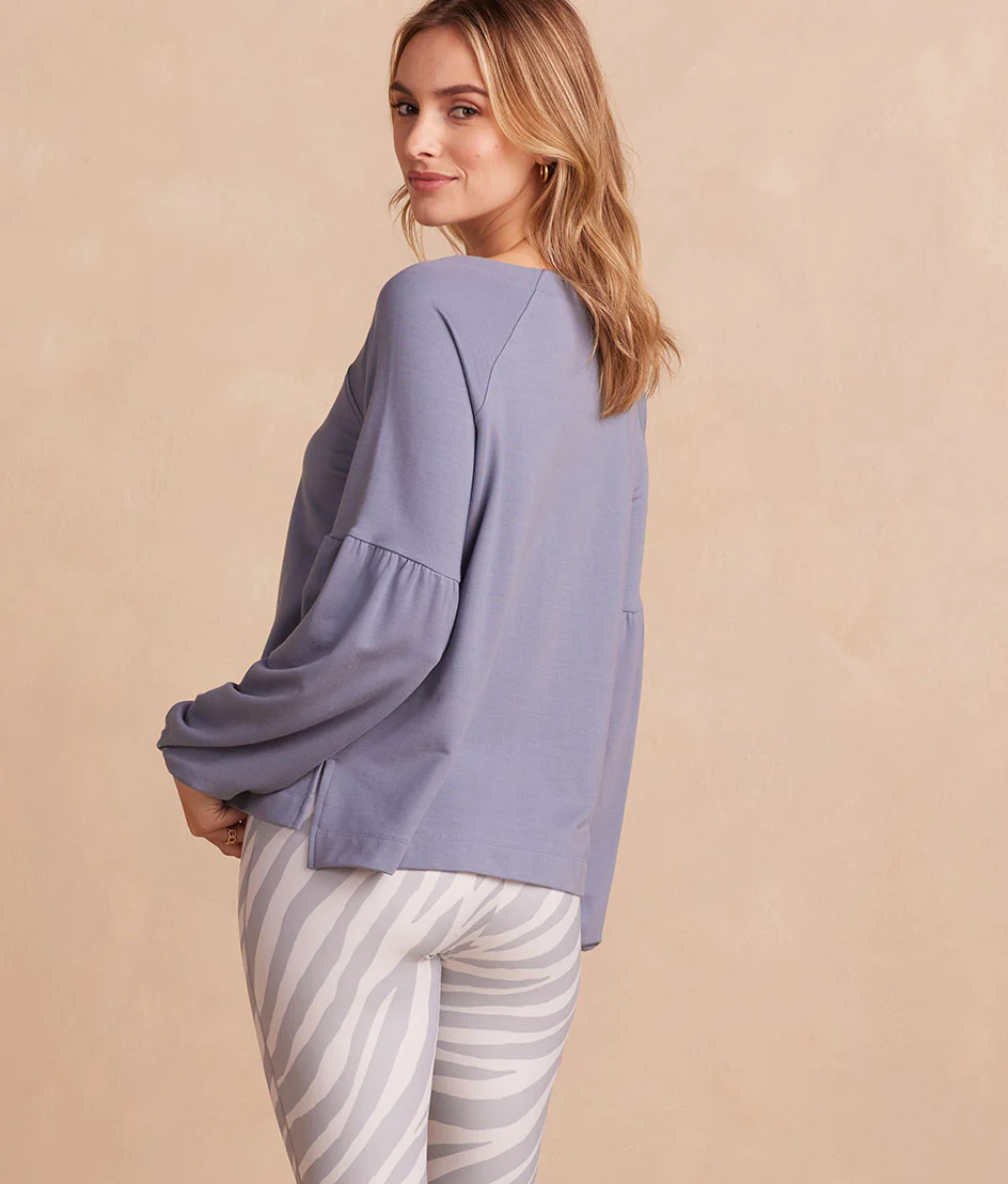 Looks like a top, feels like a hug. Finished with a flattering neckline and dramatic sleeves, this elevated pullover is extra comfy in our supersoft, eco-friendly French Terry fabric. (Seriously, it’s like your best, worn-in t-shirt had a love child with a cozy blanket.) Pair it with your favorite Summersalt pants for an effortless look or any of our leggings to create the perfect set for travel or lounging.