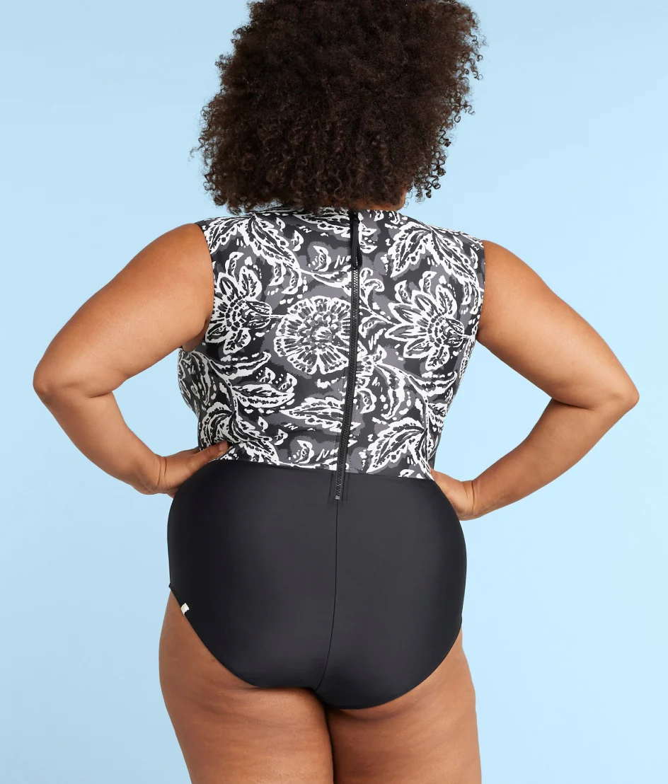 Allow us to introduce you to our favorite full-coverage stunner. From the supportive, high-neck design with built-in shelf bra to the flattering colorblocking to the cute, eye-catching zip back, this one-piece is made to make you feel amazing.