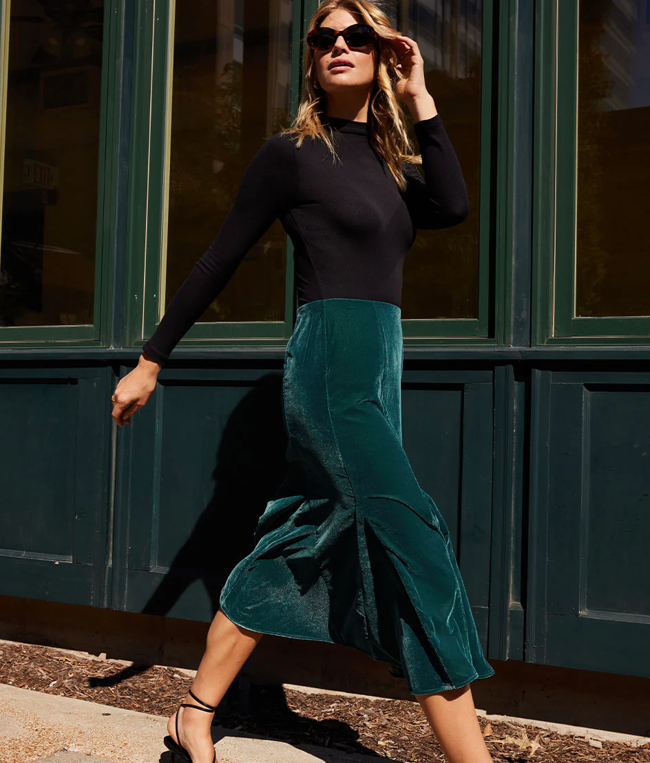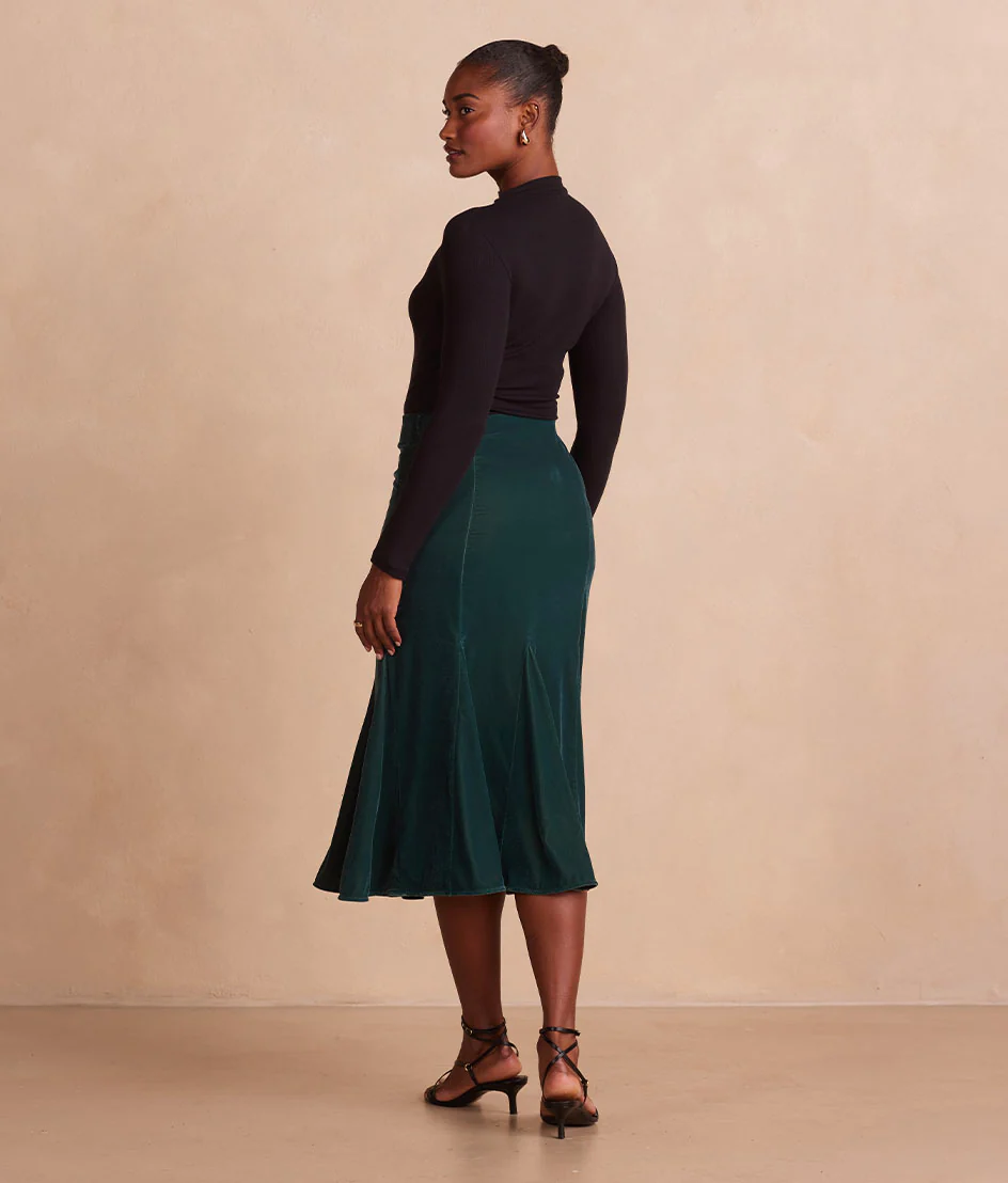 The Sustainable Velvet Collection Midi Skirt – Pine