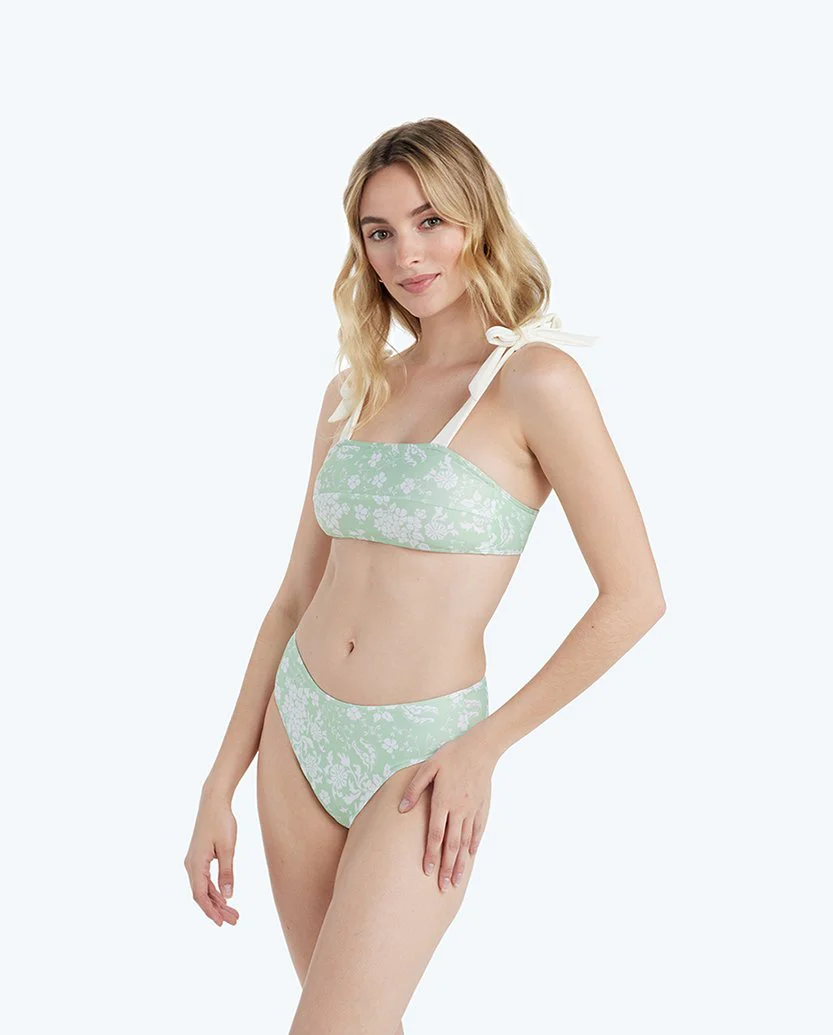 This classic maillot gets a chic update with mixed prints and a wink of ruffles. Built-in soft cups provide support and coverage and the colorblocking at the natural waist flatters every figure.